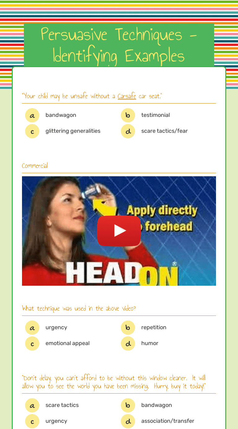 0 Comments for "Persuasive Techniques Worksheet 6Th Grade / Persuasive Technique In Advertising Slide Share /"